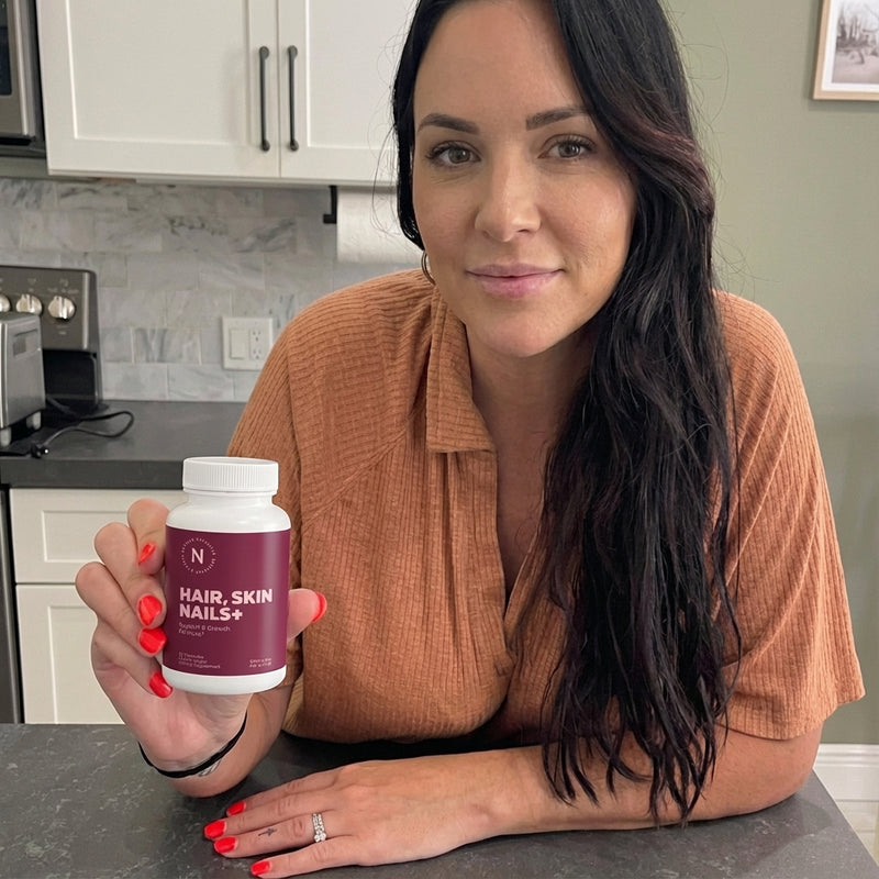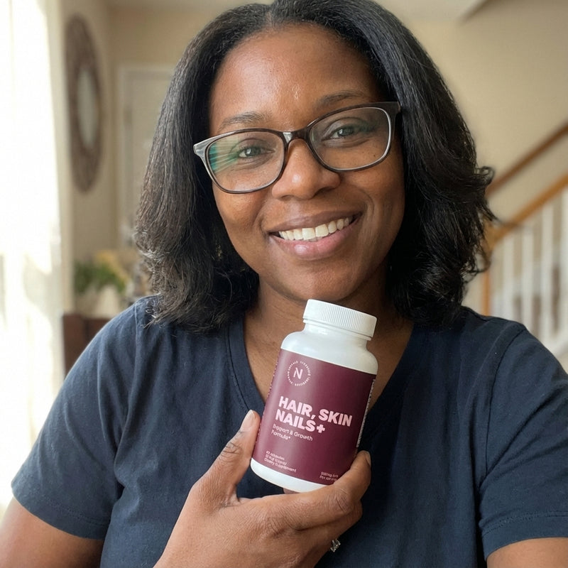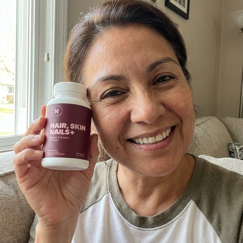Hair.Skin.Nails promotes your hair, skin and nails overall health, strength and growth. See yourself better in the mirror with Nuvala Vitamins.